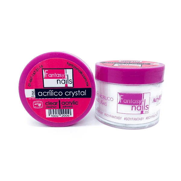 - El polvo acrílico Cristal de Fantasy Nails es un polvo muy fino que en combinación con el liquido acrílico o monómero permite formar una pasta inicialmente suave para esculpir uñas postizas.