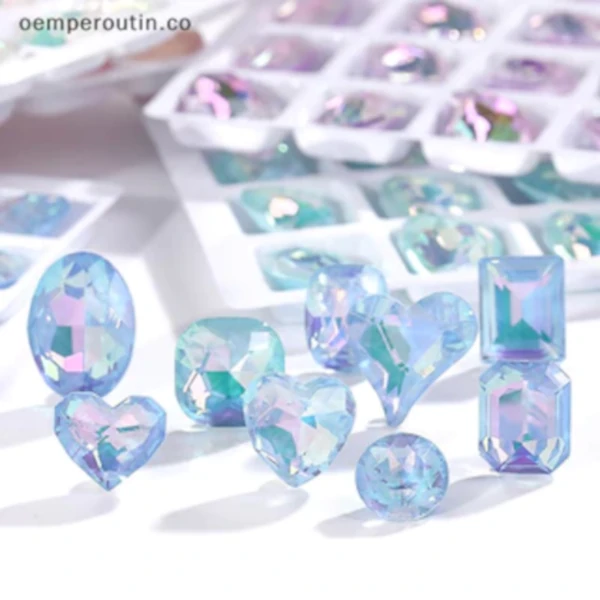 Elementos decorativos, hechos de acrílico o cristal que se utilizan para agregar un toque de brillo y estilo a las uñas.