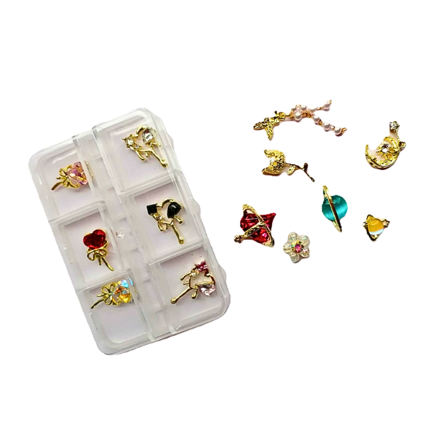 Pequeños adornos tridimencionales  que se aplican sobre las uñas para decorar y personalizar las manicuras.